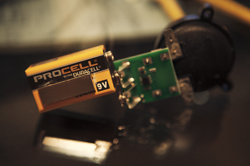 The unit is powered by an included 9-volt battery, which will power the unit for up to 100 hours. We'll even toss in a magnet so you can easily attach the unit to any metal surface.